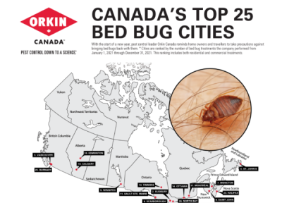 یافته ها بر اساس تعداد درمان ساس های تجاری و مسکونی اجرا شده به وسیله Orkin از اول ژانویه تا 31 دسامبر 2021 است.