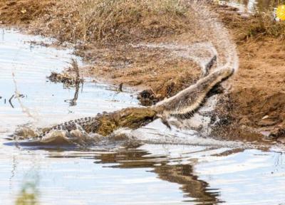 این لحظه باورنکردنی بود که یک عکاس مشتاق و علاقمند به حیات وحش شاهد تلاش تمساحی بود که یک گورکن عسل خوار را در آب متلاشی می کند.