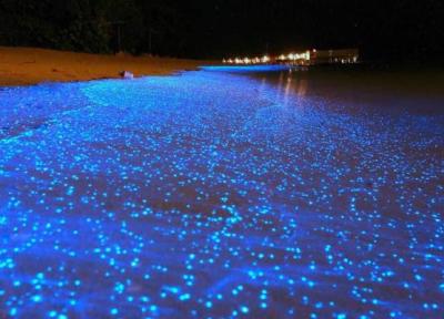 در سواحل زیست تاب، آبزیان شب تاب نادر پدیده ای به نام زیست آبی را با نور آبی درخشان در دریا و ساحل ایجاد می کنند.