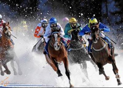 اوج هیجان و آدرنالین در مسابقه اسب سواری روی یخ سوئیس
